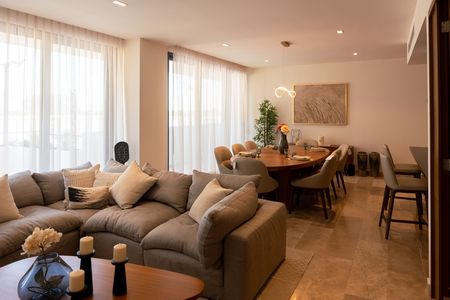 Se entregan encortinados, se incluye refrigerador, TV en la cocina, generador de vapor para el baño principal, acabados importados