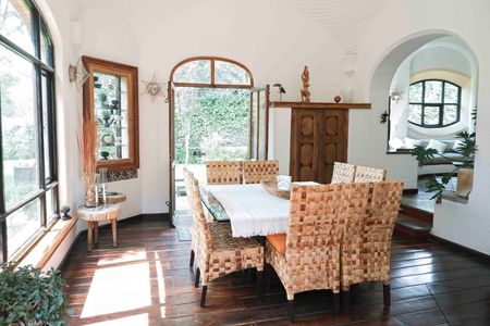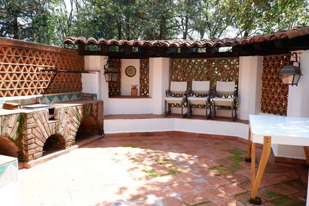 RESIDENCIA en venta en Tlalpuente 4,329m2 en bosque 650m2 construidos por el Arq. Manuel Parra en un bello terreno de 4,329m2 en medio del bosque en exclusivo fraccionamiento al sur de la CDMX, 4 espaciosas recámaras, 3.5 baños, principal con jacuzzi, vapor y sauna, amplio vestidor y solárium, una suite con cocina y sala, estudio, terrazas, patio con asador, cocina integral, pantry antecomedor, comedor, sala,recibidor, 2 bodegas, cuarto de servicio, jardín Sur y Norte, pista para correr y explanada, 6 autos