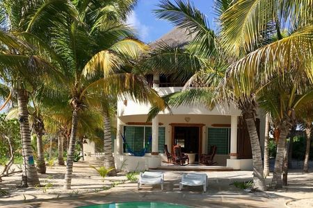 ESTACIONAMIENTO DESCUBIERTO Y JARDINES MADUROS CON ALBERCA Y TERRAZA JARDINADA MUY SOLEADA Y RODEADA DE VEGETACIÓN, ÁREA PARA ASADOR Y TERRAZA CUBIERTA.