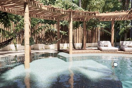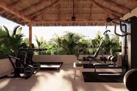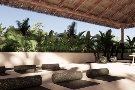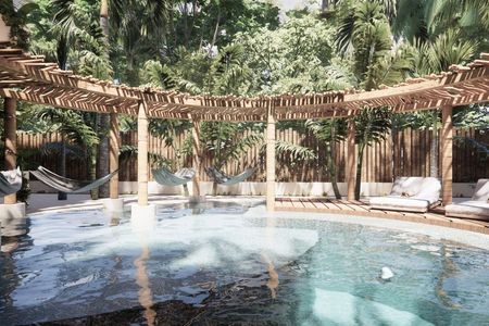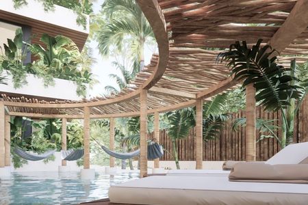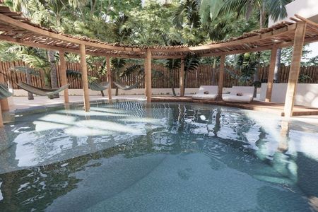 Este nuevo desarrollo cuenta con una hermosa alberca tipo cenote, hamacas, una alberca en el rooftop, gimnasio, espacio para yoga, centro holístico y estacionamiento para propietarios e invitados. El complejo es seguro con acceso controlado y seguridad las 24 horas. Esta área también ofrece acceso a Internet confiable y de alta velocidad.